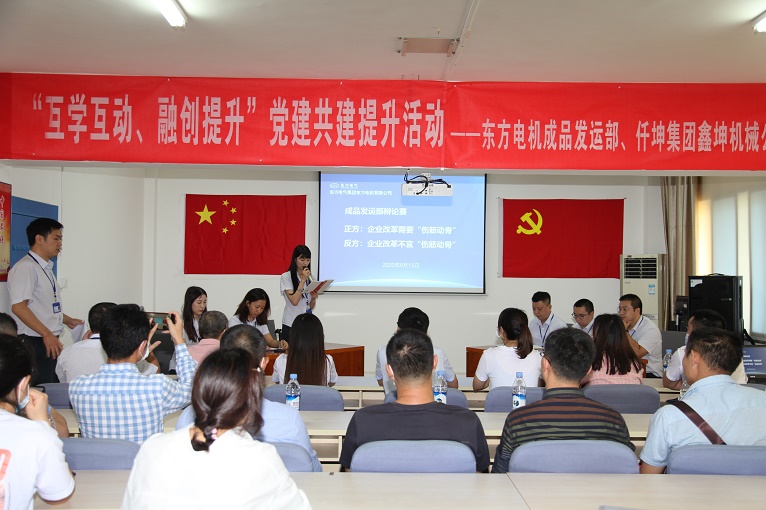在東電成品發(fā)運部黨支部黨建陣地,開展了以“企業(yè)改革是否需要傷經(jīng)動骨”為主題的辯論賽,正反雙方開展了激烈辯論,現(xiàn)場氣氛熱烈火藥味十足。在吳云華書記宣講了黨課,組織委員交流工作圖表后,雙方黨支部委員簽訂了互學(xué)互動承諾書。東電成品發(fā)運部黨支部書記吳云華表示,要加強共建支部之間的交流學(xué)習(xí),共同促進共同提高,進一步增強共建學(xué)習(xí)效果,不斷夯實雙方黨支部黨建基礎(chǔ),提升黨建科學(xué)化水平,體現(xiàn)共建合力。