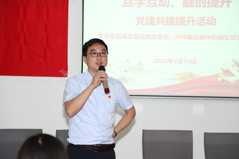 9月15日下午,仟坤集團鑫坤機械黨支部與東電成品發(fā)運部黨支部在東方電機成品發(fā)運部黨員活動中心開展了黨建共建提升活動。仟坤集團黨委書記、副總裁周述軍帶領(lǐng)集團黨委班子及各黨支部書記、鑫坤機械黨支部全體黨員參加。