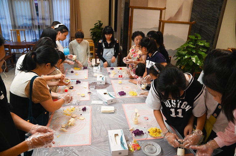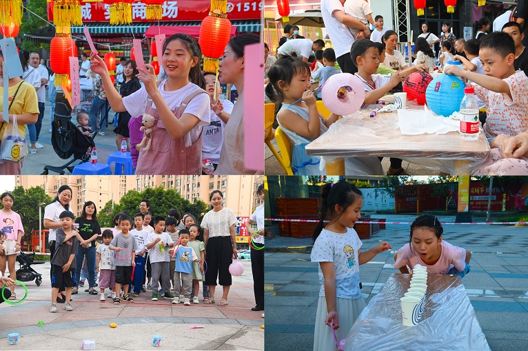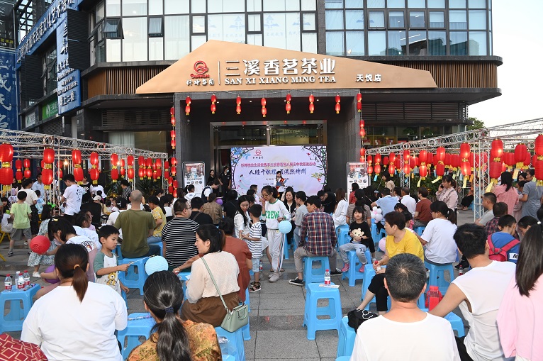 隨著主持人宣布活動正式開始,現(xiàn)場氣氛被瞬間點燃,鮮紅的燈籠下吸引了大批燈謎愛好者駐足猜燈謎。游園活動現(xiàn)場更成了小朋友們的樂園,吹乒乓、套圈、DIY中秋燈籠好不熱鬧。三溪香茗天悅店里又是一番景象,家長們領著自家小朋友做著手工月餅和冷飲,一片溫馨祥和。