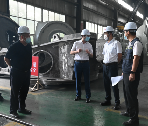 9月30日下午,中共綿竹市委書記王宏一行到仟坤集團(tuán)鑫坤機(jī)械檢查指導(dǎo)節(jié)前安全生產(chǎn)工作及疫情防控措施落實(shí)情況。集團(tuán)董事長謝世千及黨委書記、副總裁周述軍陪同檢查。王宏書記一行首先來到鑫坤機(jī)械重機(jī)車間實(shí)地查看車間運(yùn)行情況,聽取了周述軍同志關(guān)于車間安全環(huán)保管理、疫情防控等方面工作匯報(bào)。