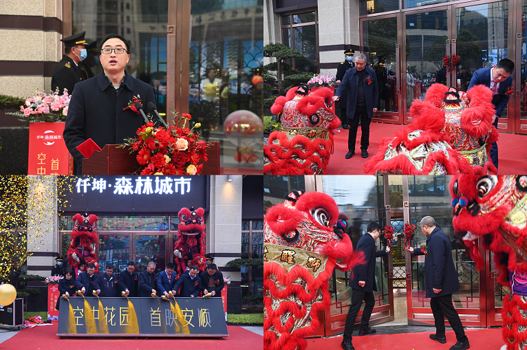 舞蹈《瑞獅鳴潮》拉開亮相儀式序幕,激昂的鼓點(diǎn)歡快的節(jié)奏將現(xiàn)場(chǎng)的氛圍點(diǎn)燃,寒冷的天氣也阻擋不了現(xiàn)場(chǎng)嘉賓的熱情。集團(tuán)黨委書記、副總裁周述軍致辭之后,集團(tuán)董事何述林和黎小東總經(jīng)理手持朱砂毛筆為舞獅點(diǎn)睛,寓意祥和旺財(cái)、點(diǎn)石成金?,F(xiàn)場(chǎng)嘉賓將鎏金倒向牌匾“空中花園 首映安順”赫然出現(xiàn),嘉賓伴隨著舞獅進(jìn)入森林城市銷售中心,華麗的展廳內(nèi)全景沙盤映入眼簾,銷售經(jīng)理做著介紹,參觀的嘉賓絡(luò)繹不絕現(xiàn)場(chǎng)好不熱鬧...