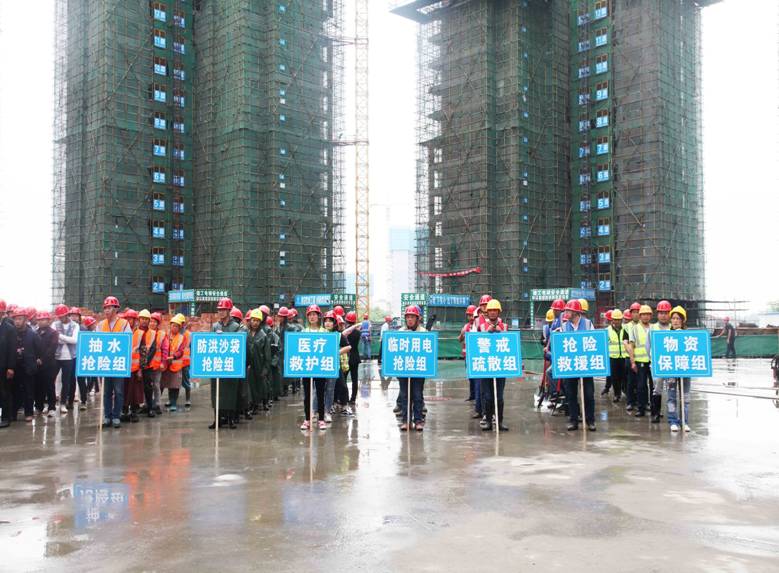 上午10:00分,在“仟坤-天朗”項(xiàng)目施工現(xiàn)場(chǎng),一場(chǎng)別開(kāi)生面的防汛搶險(xiǎn)應(yīng)急演練正在進(jìn)行中,演練模擬綿竹突降暴雨,造成建筑工地大面積積水,部分裝備被淹。防汛搶險(xiǎn)小組“聞汛”而動(dòng),第一時(shí)間趕到事故現(xiàn)場(chǎng),隨即開(kāi)展救援工作,首先將傷員搶救出來(lái)并轉(zhuǎn)移到安全地帶,臨時(shí)用電搶險(xiǎn)組斷開(kāi)電路,然后用大功率抽水機(jī)排水,并用沙袋截住坑基上的側(cè)洪水,經(jīng)過(guò)半個(gè)小時(shí)的艱苦奮戰(zhàn),險(xiǎn)情被完全控制,演練結(jié)束。