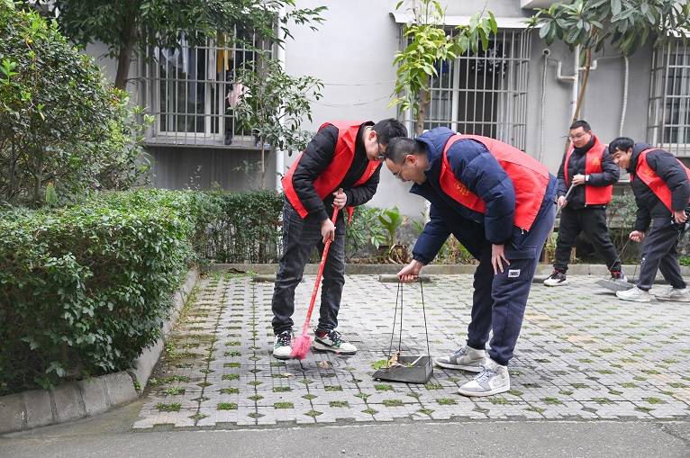 上午10點(diǎn)仟坤青年志愿者們分成多個(gè)小組,大家?guī)鲜痔?、手持掃把、拾物鉗等工具,開(kāi)始了對(duì)整個(gè)公租房小區(qū)內(nèi)的清潔工作,一個(gè)個(gè)紅色的身影穿梭在小區(qū)的各個(gè)角落,大家神情專注,動(dòng)作矯健??葜β淙~、煙蒂紙屑等垃圾被一掃而空。