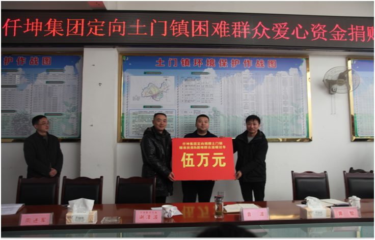 當(dāng)天下午,仟坤集團(tuán)定向土門鎮(zhèn)困難群眾愛心資金捐贈(zèng)儀式在土門鎮(zhèn)一樓會(huì)議室舉行,集團(tuán)總裁謝澤波向土門困難群眾捐贈(zèng)5萬(wàn)元現(xiàn)金。儀式結(jié)束后,謝總裁還與土門高校青年人才進(jìn)行了現(xiàn)場(chǎng)交流,土門鎮(zhèn)為引導(dǎo)在外學(xué)習(xí)的青年學(xué)子積極參與家鄉(xiāng)建設(shè),為他們返鄉(xiāng)就業(yè)創(chuàng)業(yè)搭建平臺(tái)、提供服務(wù),特組織了這場(chǎng)交流會(huì),謝總裁在座談會(huì)上分享了他個(gè)人的創(chuàng)業(yè)就業(yè)經(jīng)驗(yàn),與青年學(xué)子交流討論,了解青年學(xué)子所思、所想,并表示隨時(shí)歡迎他們到仟坤集團(tuán)實(shí)習(xí)、就業(yè)。