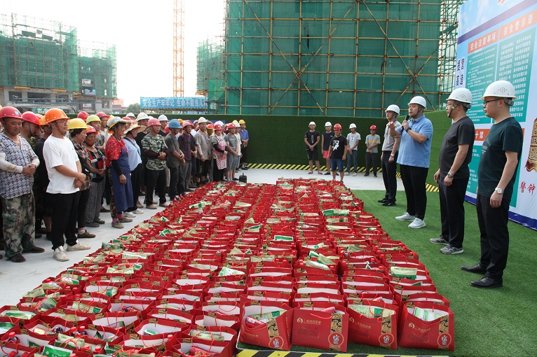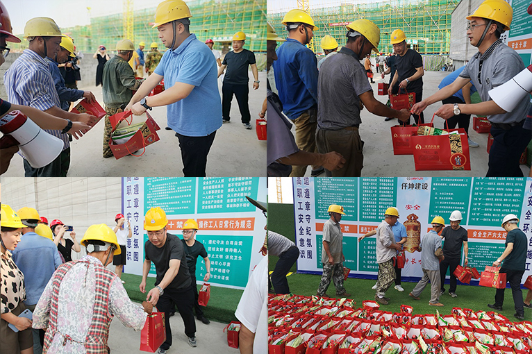 夏日驕陽似火,建筑工地更是熱浪滾滾,為使廣大職工度過一個安全、健康、衛(wèi)生、清涼的夏季。8月10日上午,仟坤集團總裁謝澤波,集團常務副總裁葉金春,集團黨委書記、副總裁周述軍,集團副總裁趙新強來到仟坤水街和仟坤天璽項目工地看望仟坤建設的一線建筑工人。